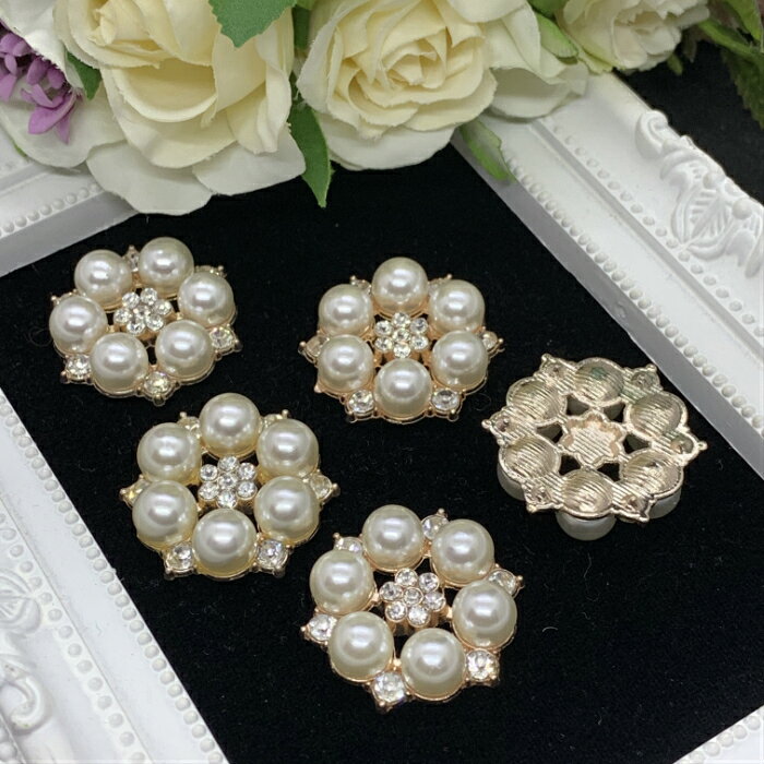 サイズ約2.4cm×約2.4cm 素材合金・イミテーションパール・ラインストーン数量 1セット5個色1ゴールド・2シルバー ※モニターの発色具合によって実際の物と色が異なる場合があります。